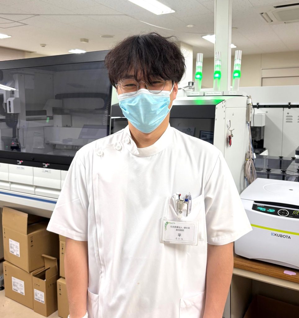 業務内容は生化学検査、免疫検査、一般検査です。中小規模の病院のため職員同士は顔が見える距離感で業務でもコミュニケーションが図りやすいと思います。中央検査科は、自分が挑戦したいことをしっかりサポートしてくれる環境で理解があり働きやすい職場です。