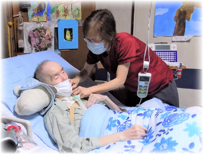 - 胃ろう、尿管など留置カテーテルが入っている。